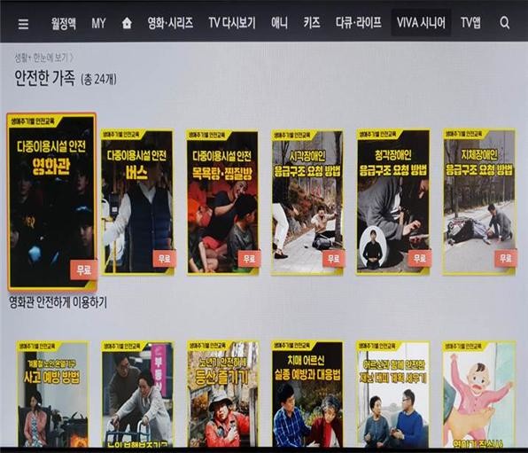 우선, 7월 24일부터 Btv 시니어 전용관을 통해 노년기 안전교육 콘텐츠 24편을 제공한다.