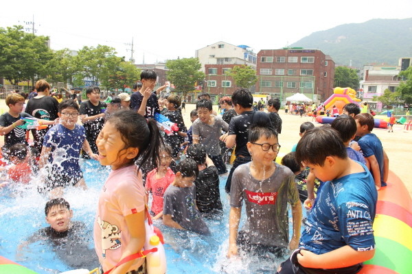 물 놀이터는 더운 여름날씨를 날리는 대형 슬라이드와 수영장을 준비해 아이들의 인기가 가장 많았던 놀이터였다. 학부모회는 아이들의 안전을 위해 유아와 초등학생의 풀장을 따로 구분해 마련하고, 질서를 지키며 놀 수 있도록 안전요원으로 적극 참여했다. 또한 물풍선을 한가득 준비해 “학교폭력 싫어요”라는 외침과 함께 풍선던지기가 운영돼 아이들의 웃음소리가 끊이지 않았다.