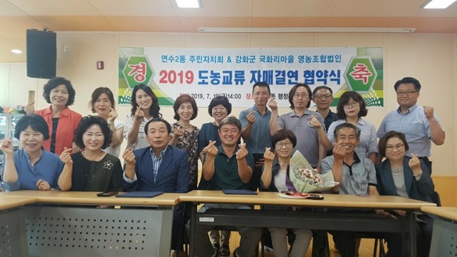 연수2동 주민자치회와 강화군 국화리마을 영농조합법인은 지난 19일 연수2동 행정복지센터에서 주민자치회와 도농교류 활성화를 위한 자매결연 협약식을 체결했다.