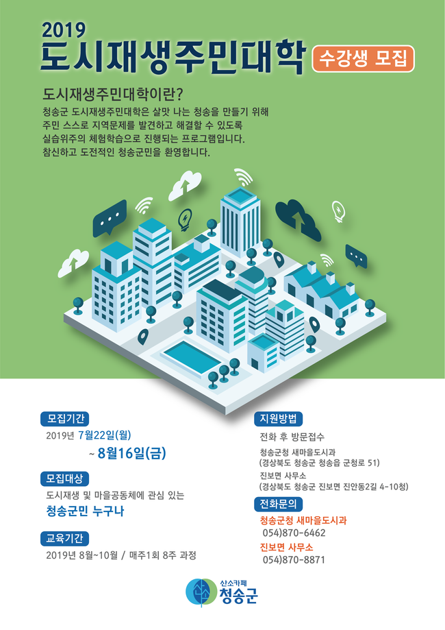 한편, 청송군 도시재생주민대학은 8월 마지막 주부터 8주간 진보문화체육센터에서 운영될 예정이다.