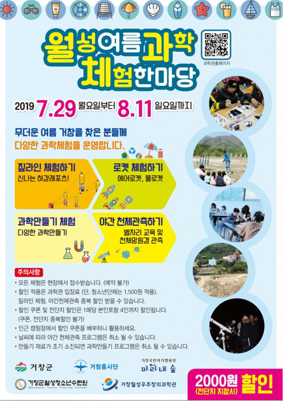 거창월성우주창의과학관은 오는 29일부터 8월 11일까지 거창월성우주창의과학관과 거창군월성청소년수련원에서 월성여름과학체험한마당을 개최한다고 밝혔다.