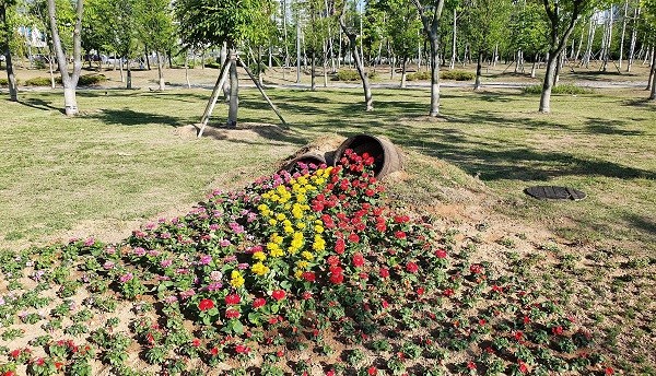 시는 지난 4월 김포한강신도시 내 공원에 104,200본의 초화류 식재를 시작으로, 최근에는 낙화된 봄꽃을 교체 식재해 새로운 모습의 초화원을 완성했다.