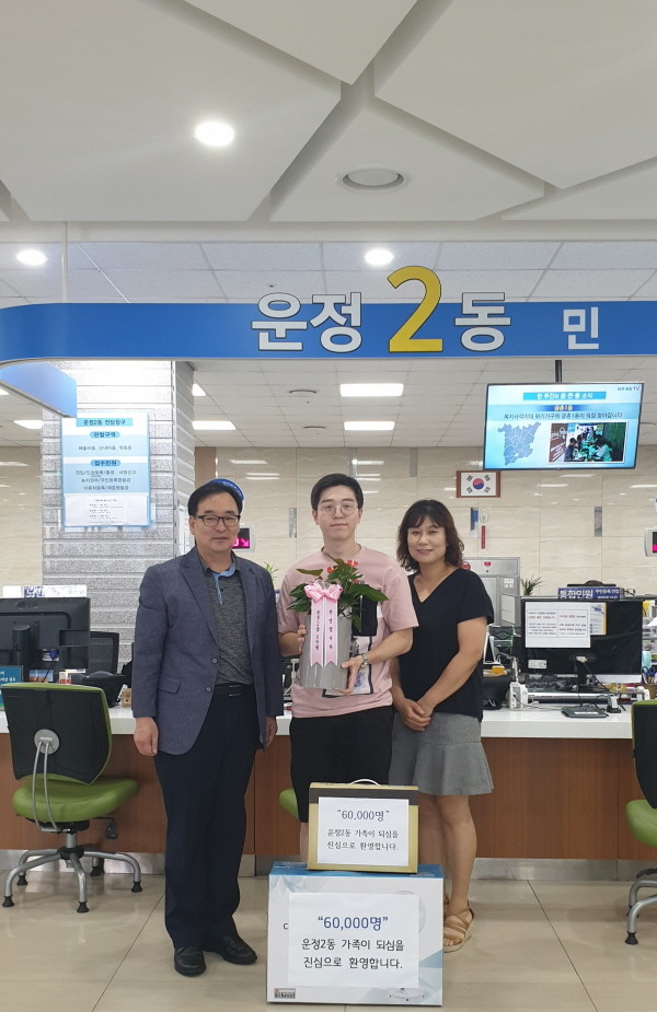 운정2동 6만번째 전입자 환영사진