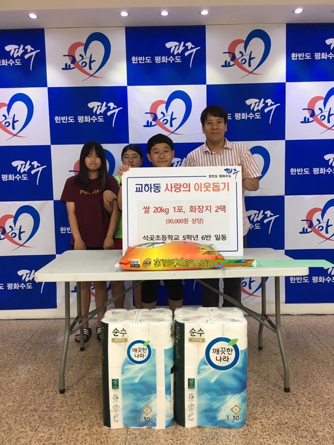 최영목 교하동장은 “아이들의 작은 나눔이 큰 사랑으로 어려운 이웃들에게 힘이 될 것”이라며 “아이들의 마음을 담아 도움이 필요한 분들에게 잘 전달하겠다”고 말했다.