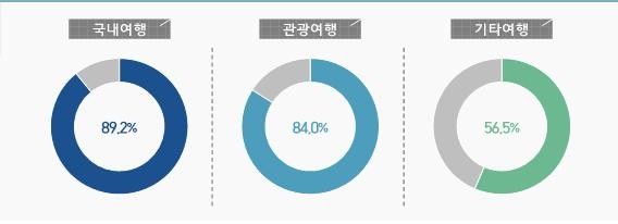 2018년 국내여행 경험률은 89.2%, 관광여행은 84.0%, 기타여행은 56.5%