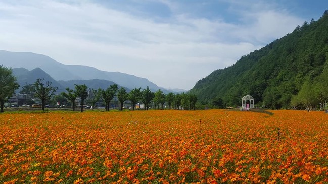 평창더위사냥축제장 황하코스모스 밭