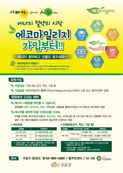 구로구가 ‘에너지 아껴 혜택 받는’ 에코마일리지 회원을 모집하고 있다.