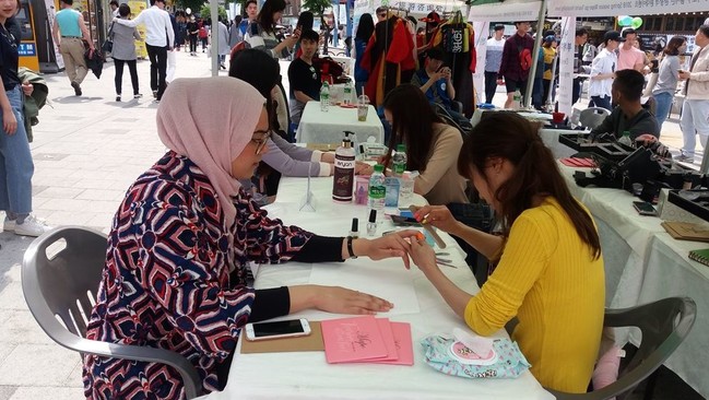 ‘2019 마포구 관광객 환대 이벤트’에 참여하여 다양한 이벤트를 즐기고 있는 무슬림 관광객