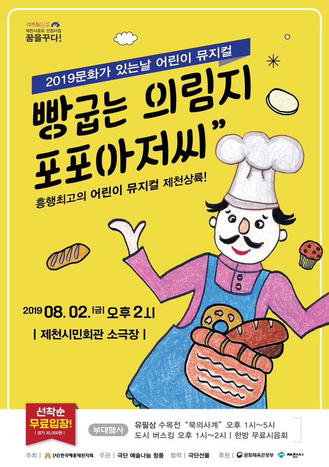 제천시는 내달 2일 오후 2시 시민회관 소극장에서 체험공연 형식의 요리퍼포먼스 ‘빵굽는 의림지 포포아저씨’를 공연한다고 밝혔다.