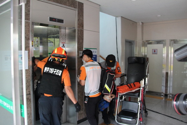 광주시 북구가 승강기 안전사고 예방을 위한 훈련을 실시한다.