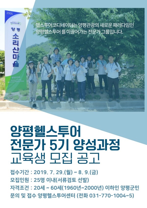 양평헬스투어 전문가(코디네이터) 5기 양성과정 교육생 모집