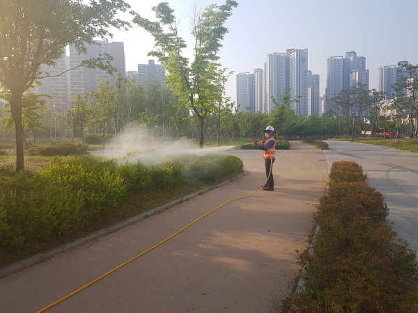 시는 지난 5월말 1회 차 정기 병해충방제작업을 시작으로 7월초 긴급방제를 실시했으며, 7월말까지 2회 차 정기 병해충방제 작업을 실시할 예정이다.
