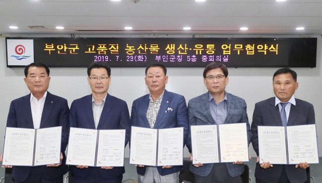 부안군은 지난 23일 부안군청 5층 대회의실에서 고품질 지역농산물 안정적 생산·유통과 판매 활성화를 위해 지역농협, 전문유통조직, 생산자단체 등과 업무협약을 체결했다.