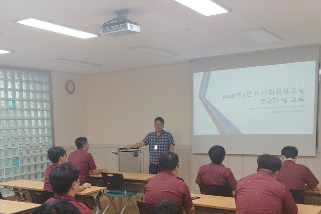 검사 이후에는 사회복무요원으로 병역 생활 중 꼭 알고 있어야 할 규정 등에 대해 교육을 진행하였으며, 근무 중 애로사항 청취 및 사기진작 방안 등에 대한 의견 교환이 이루어졌다.