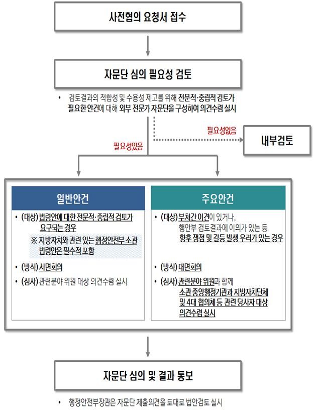 현 정부의 국정과제로서 처음 도입된 자치분권 사전협의제는 중앙행정기관이 소관 법령을 제·개정할 때 해당 법령안의 지방자치권 침해 여부에 대해 행정안전부와 사전에 협의하도록 하는 제도이다.