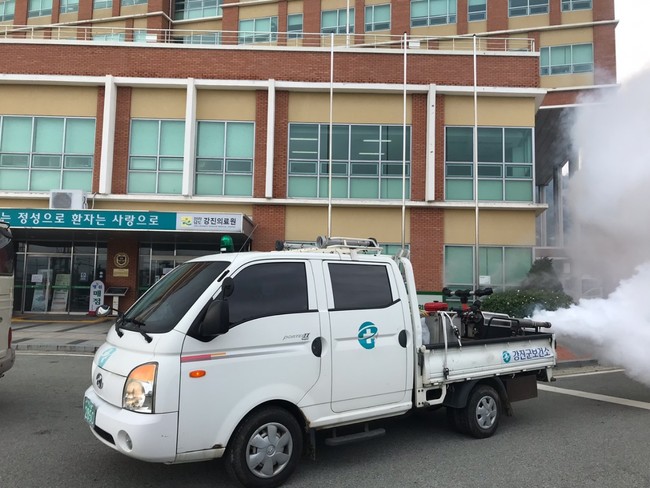 군 보건소는 연막소독보다 방제 원가가 저렴하고 소독시 시야 확보에 어려움이 없으며 냄새가 나지 않고 장시간 살충 효과를 볼 수 있는 분무소독을 병행 실시하고 있다.