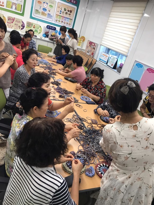 또 재료인 양말목은 양말을 만들 때 필수적으로 만들어지는 폐기물을 이용한 업사이클 공예이기 때문에 환경보호 효과를 얻을 수 있었고, 오로지 손만 이용하는 뜨개질 공예라 어르신들의 치매예방 활동까지 1석 3조의 효과를 볼 수 있었다.