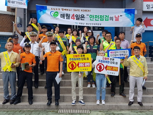 이날 캠페인 참가자들은 군민들에게 여름철 무더위를 잠시라도 날려줄 부채를 홍보물품으로 나누어주며 여름철 물놀이 안전사고 예방 및 폭염 대처 안전수칙과 4대 불법 주·정차 금지구역 주민신고제 등을 홍보하고 주변의 안전위험요소를 발견한 경우에는 안전신문고로 신고하도록 안내했다.