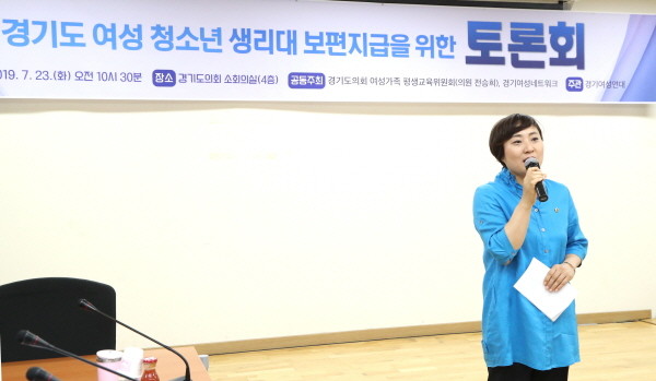 경기도의회 안혜영 부의장은 지난 23일 경기도의회에서 개최된 “경기도 여성 청소년 생리대 보편지급을 위한 토론회”에 참석해 격려했다.
