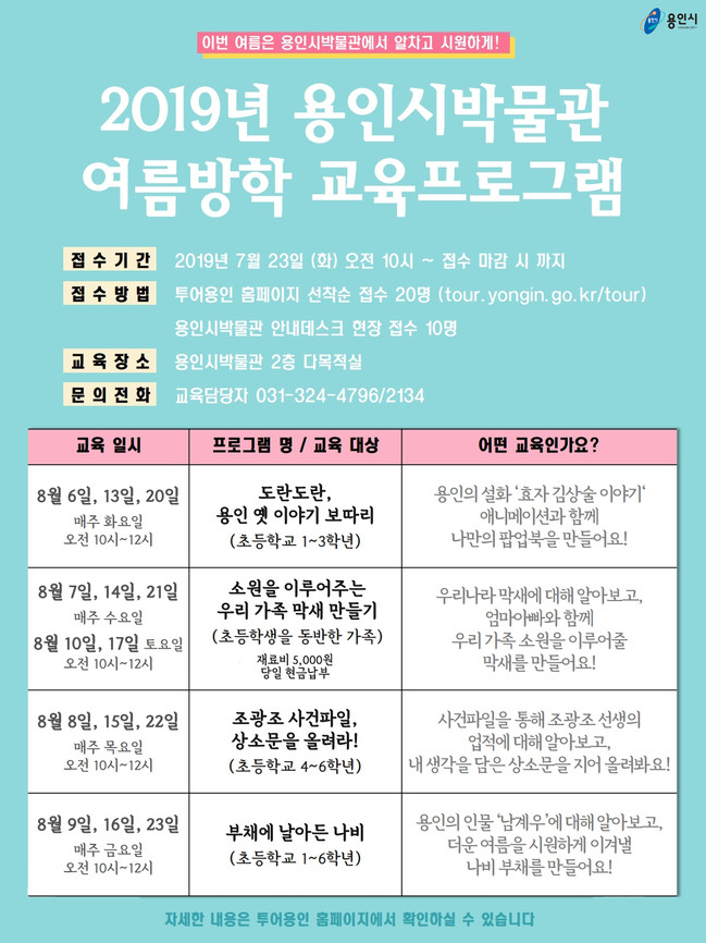 관내 초등생 또는 시민 누구나 이 프로그램에 참가할 수 있으며 신청을 하려면 투어용인 홈페이지에서 사전 접수하거나 박물관에서 바로 접수하면 된다.