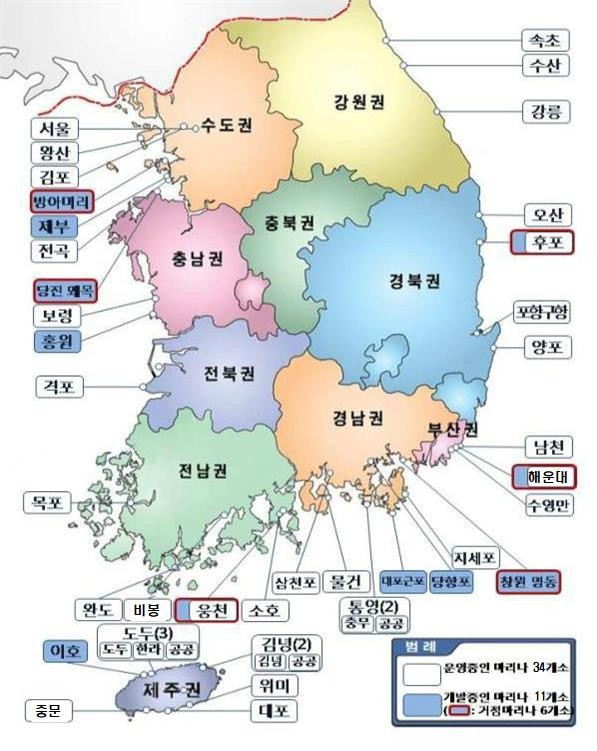 전국 마리나항만 현황(지도)