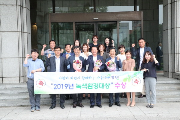 합천군은 24일 환경법률신문사와 환경방송이 주최하는 ‘2019년 녹색환경대상’시상식에서 지방자치단체부문 ‘환경대상’을 수상했다.