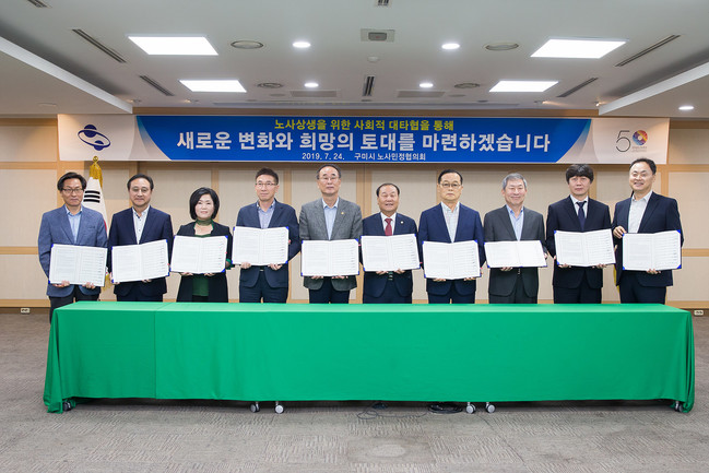 이날 협약 체결엔 구미시 노사민정협의회 위원장인 장세용 구미시장을 비롯한 구미시 노사민정협의회 위원 10명이 참석하였으며, 상생형 구미일자리 추진 경과 및 현안 설명과 협약 체결 순으로 진행됐다.