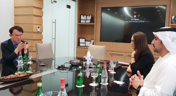 [경기=로컬라이프] 진용두 기자 =조청식 수원시 제1부시장이 지난 24일 아랍에미리트 두바이 월드트레이드센터 회의실에서 마히르 줄파 월드트레이드센터 부사장을 만나 컨벤션센터 운영에 관한 의견을 나눴다.