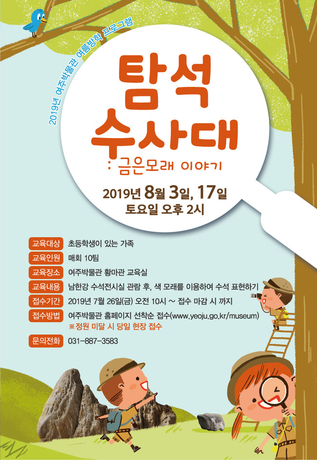 ‘트레져헌트:비밀 코드를 찾아라’는 초등학교 4~6학년을 대상으로 어린이의 눈높이에 맞는 외국어(영어) 전시해설을 듣고 전시유물에 숨겨진 암호를 풀어 박물관의 숨겨진 보물을 찾는 프로그램이다. 7월 30일부터 8월 14일까지 매주 화, 수요일 오전 10시와 오후 2시에 총12회 운영되며 여주박물관 홈페이지와 현장 접수를 통해 참여 할 수 있다.
