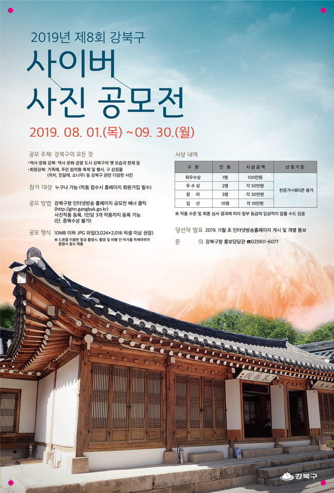 강북구가 ‘강북구의 모든 것’을 주제로 ‘제8회 사이버 사진 공모전’을 개최한다.