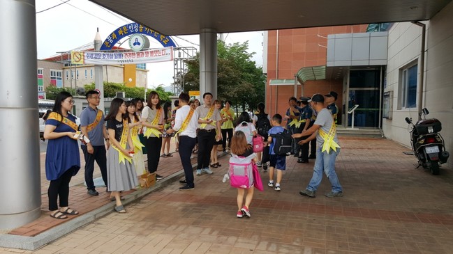 일동초등학교에서 실시한 이번 캠페인은 일동초등학교 학부모 및 교사, 일동파출소, 일동면행정복지센터 직원 등 50여 명이 참여한 가운데 진행됐다.