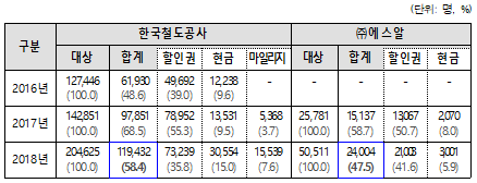 또 지연배상을 받는 사람이 철도회원이면 할인권을 자동으로 지급해 편리한 측면이 있으나 할인권 지급 사실을 모르고 유효기간 1년을 넘겨 사용하지 못하거나, 할인권 사용이 1회로 제한돼 잔액을 사용하지 못하는 문제점이 발생했다.