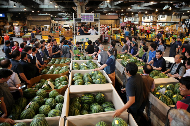 양구에서 생산된 수박이 26일 첫 출하돼 오전에 서울 가락동 농산물 도매시장과 경기도 구리시 농협 공판장에서 출하경매가 실시된다.