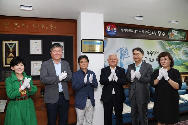 무주군은 25일 “Good Air City“ 현판식을 가졌다. 군청에서 진행된 이날 행사에는 황인홍 군수와 이광환 부의장을 비롯한 세계맑은공기연맹 김윤신 대표 등 10여 명이 참석해 의미를 더했다.