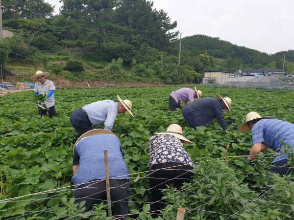 농촌지도자 고성군연합회는 지난 24일, 고구마 우량모종 공급을 통한 새 소득원 보급 확대를 위해 동해면에 소재한 공동학습포장에서고구마 농사 체험을 펼쳤다.