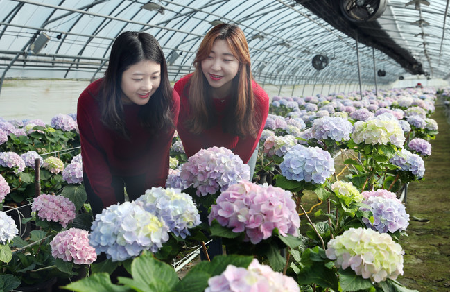 전남 강진군이 절화수국 수출 분야의 새로운 강자로 떠오르고 있다.