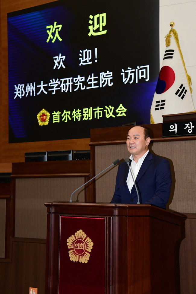 황 부위원장은 방문을 마무리하며 “정저우대학교 대학원생에게 서울시의회의 정책과 역할을 소개할 수 있어서 매우 기쁘게 생각한다”고 밝히며, “오늘 방문을 계기로 서울시의회에 대하여 마낳은 관심을 가져주길 바라며 글로벌 지구촌 시대 공동체의 일원이라는 점을 인식하여 우리나라와의 인연을 기억해주길 바란다”고 말했다.