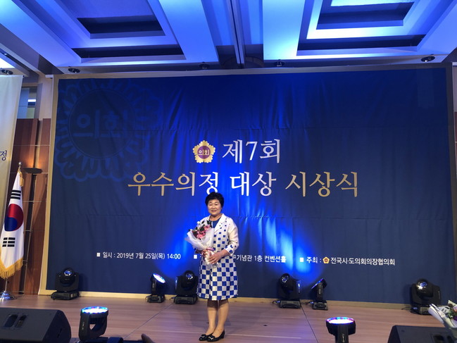 [경기=로컬라이프] 김보경 기자 = 경기도의회 심규순 의원이 25일 전국시·도의회의장협의회가 주최하는‘제7회 우수의정대상’을 수상했다.