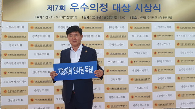 전국시도의회의장협의회에서 주관한 이번 시상식은 올해 7회째로 전국시도의원중 의정활동이 우수한 지방의원을 대상으로 수여하는 권위있는 상이다.