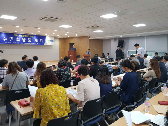 구미시는 25일 오전 10시 30분 인동동 행정복지센터 2층 대강당에서 지역주민, 국회의원, 도·시의원 및 공무원 등 130여명이 참석한 가운데‘구미 국민체육센터 건립공사’주민설명회를 개최했다.