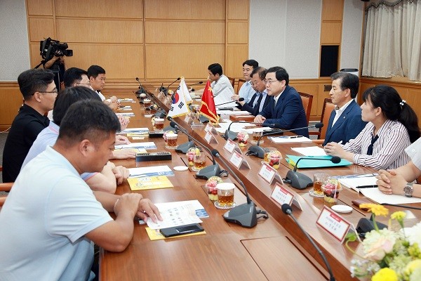 이날 중국 서주시 천산구 대표단은 오위동 당서기를 비롯해 공무원과 기업체 관계자 등 7명이 방문했다. ㈜대호테크 대표 등 7명도 동행했다. 서주시 천산구는 인구 70만명, 면적 110㎢의 경제, 교육, 의료의 중심이자 서주특대도시 핵심구 중 하나로 중국 과학기술 진보를 위한 선진도시이다.