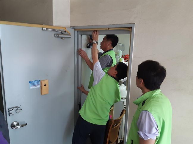 이어 6월에는 각 세대 방문 및 사전조사를 토대로 방충망을 제작·의뢰했으며, 7월초부터 20일여일간 주민자치위원회 10여명이 재능 나눔 봉사활동을 실시해 각 세대 현관문에 방충망을 설치·완료했다.
