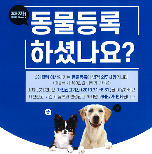 곡성군은 자진신고 기간이 종료되는 9월부터 미등록 동물을 집중 단속하고, 1차 단속 시 20만원, 2차 단속 시 40만원, 3차 단속 시 60만원의 과태료를 부과할 계획이다.