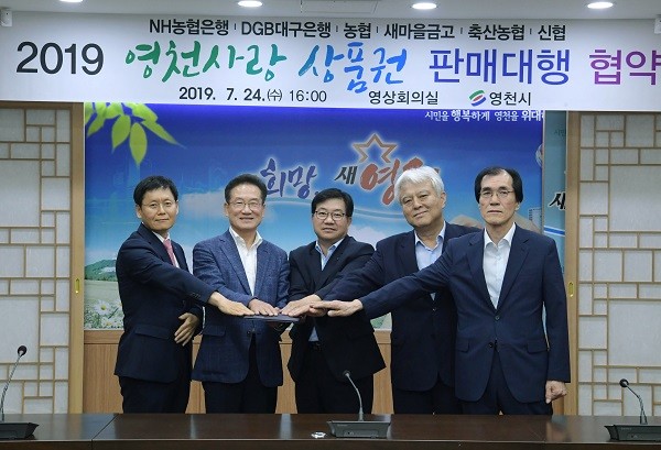 영천시는 영천 지역 내에서만 사용이 가능한 영천사랑상품권 발행을 앞두고 지난 24일 지역 내 금융기관과 상품권 판매대행 협약을 체결했다.