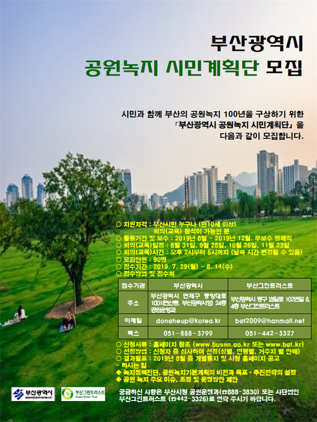 부산시 ‘공원녹지 시민계획단’ 모집 안내문