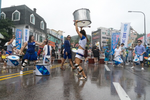 독특한 콘셉트의 복장과 퍼포먼스 행렬이 시내를 통과해 물놀이 행사장인 중앙로 사거리와 노동부 건물 앞에 도착하면 본격적인 물놀이 난장이 진행된다.