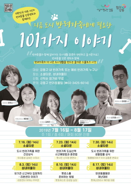 강동구가 소셜타운, 성내어울터에서 오는 8월 17일까지 강동구 반려가족을 대상으로 반려동물 관련 상식을 나누는 펫티켓 아카데미를 운영한다.