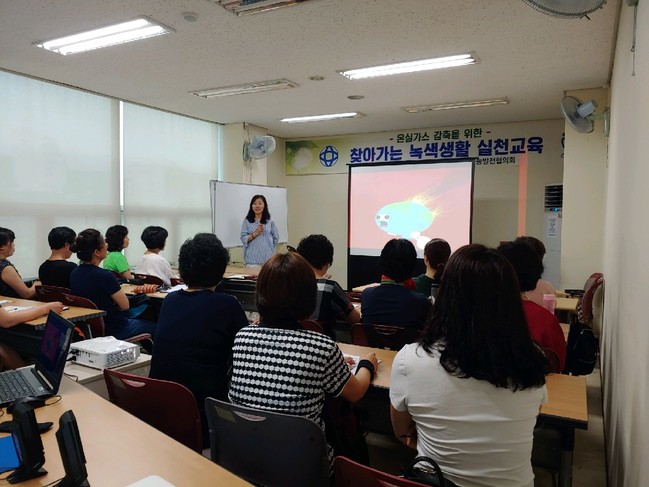 동행정복지센터에서 진행된 이날 교육에서 우숙희 강사는 지구온난화 원인으로 ‣화석연료 ‣산림훼손 ‣온실가스 다량배출 ‣쓰레기 증가 등을 꼽았고, 인간이 편안함만을 추구하는데서 발생된 지구온난화는 미세먼지 발생과 농작물 피해, 이상고온, 재난재해 등의 현상을 몰고 오고 있다고 전했다.