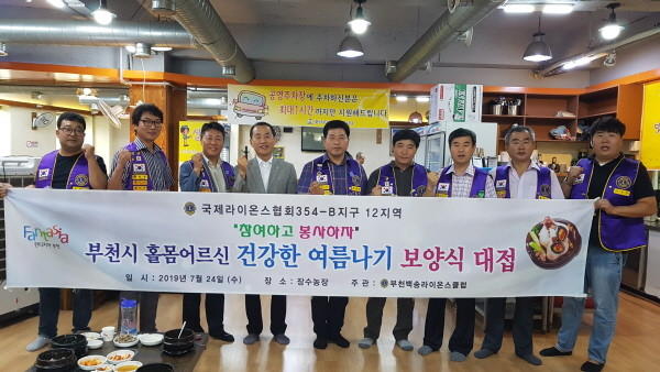 부천백송라이온스 클럽 노홍석 회장은 “어르신들이 맛있는 삼계탕을 드시고 건강하게 무더운 여름을 이겨내셨으면 좋겠다” 라고 전했다.