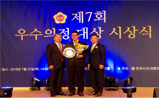 서울시의회 최영주 의원이 지난 25일 전국시·도의회의장협의회에서 개최한 ‘제7회 우수의정 대상’ 시상식에 참석해 우수의정 대상을 수상했다.